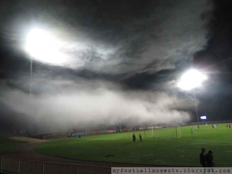 Mecz był warty swej ceny tj. podobno wyższej na to spotkanie, bo w kwocie 20 zł. Do przerwy nie padły bramki, nawet z rzutu karnego, podyktowanego dla Odry. W drugie połowie wynik zmieniał się następująco: 1-0, 1-1, 2-1, 3-1. Dwóch bramek dla gospodarzy nie widziałem, min. z powodu obserwowania oprawy. Dobrze, że widziałem bramkę z karnego na 1-1 dla ROW-u. Chyba pierwszy raz w czasie meczu, nie widziałem aż dwóch bramek.