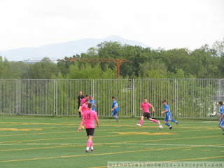 To mój pierwszy mecz piłkarski na boisku z wymalowanymi liniami także do futbolu amerykańskiego (te żółte). Wyglądało to ciekawie w czasie oglądania meczu zwłaszcza, że boisko do futbolistów jest o wiele węższe.